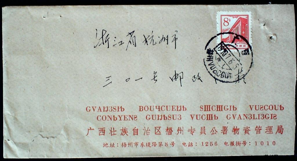 1970年广西梧州双文字30mm大直径邮戳实寄封一枚