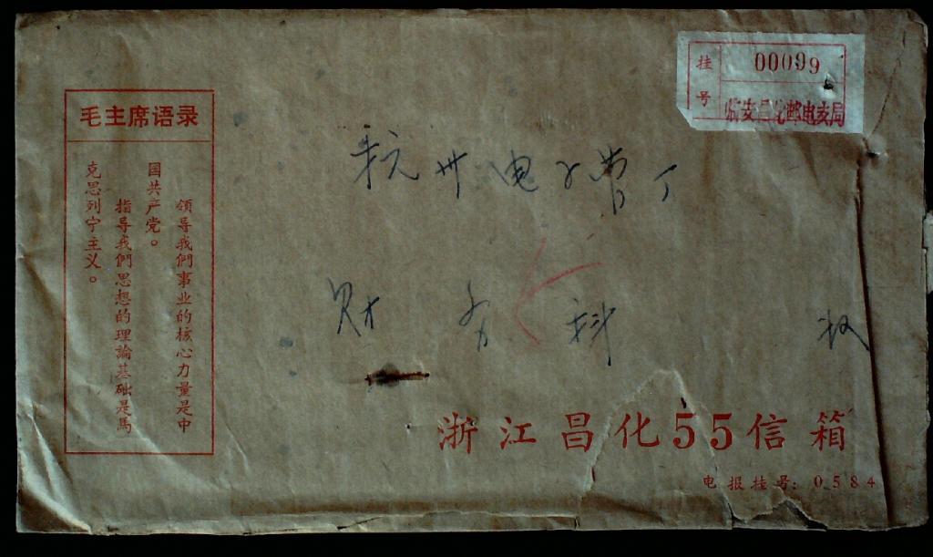 60年代浙江昌化语录封寄杭州实寄封一枚