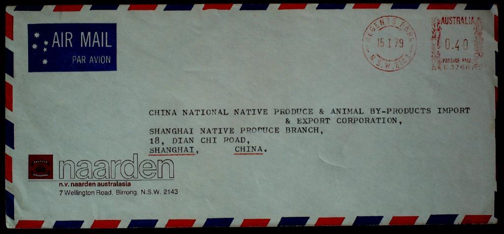 70年代澳大利亚机戳寄上海实寄封一枚