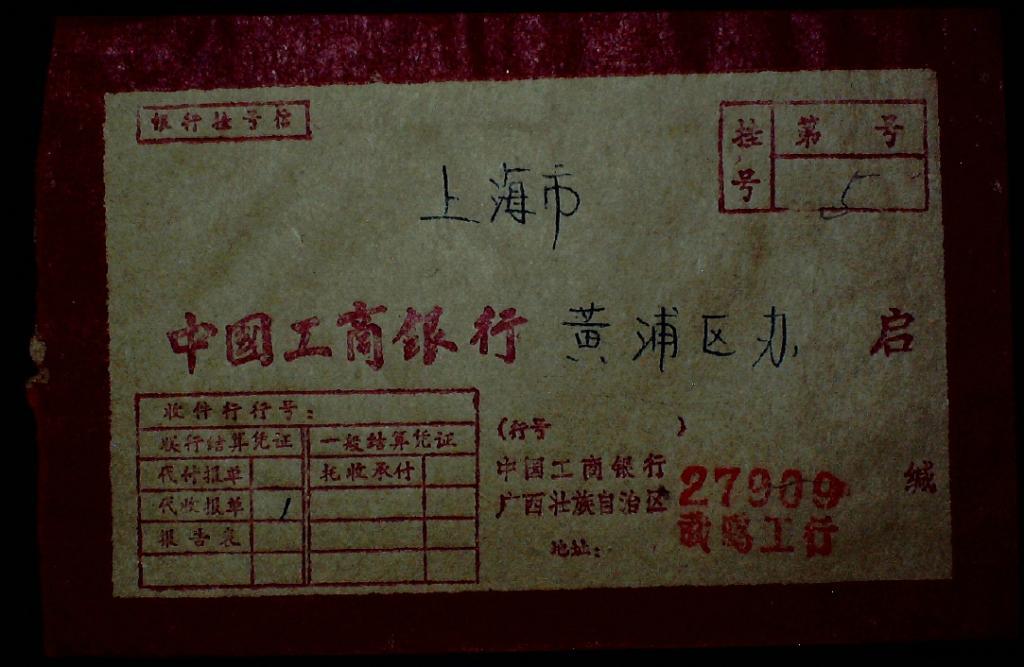 1988年广西武鸣寄上海实寄封(20分票票面低张杂物)
