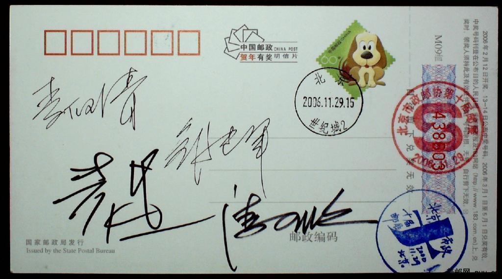 2006年 北京市内邮展签名片一枚(合李印清,黄里,邹建军,潘可明等邮票设计者签名)