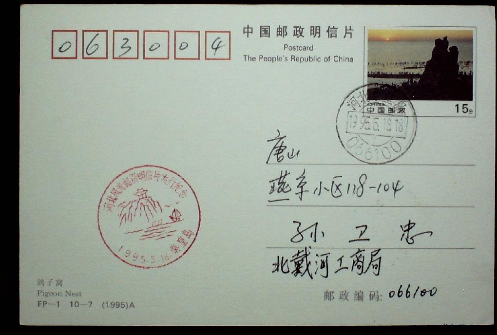 1995FP-1 10-8 鸽子窝首发首日实寄片一枚