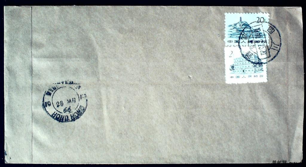 1966年贴普11 20分及普12 2分四川成都寄香港航空挂号实寄封一枚