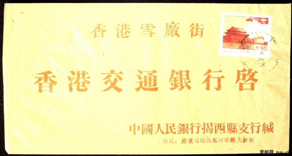 1975年广东揭西贴文普票红太阳寄出香港实寄封一枚
