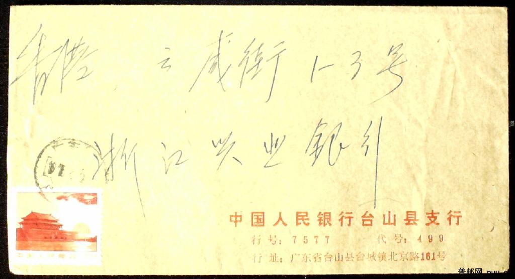 1975年广东台山贴文普红太阳8分大光圈票寄香港实寄封一枚