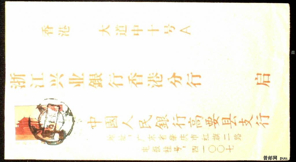 1975年广东肇庆贴文普8分红太阳票寄香港实寄封一枚