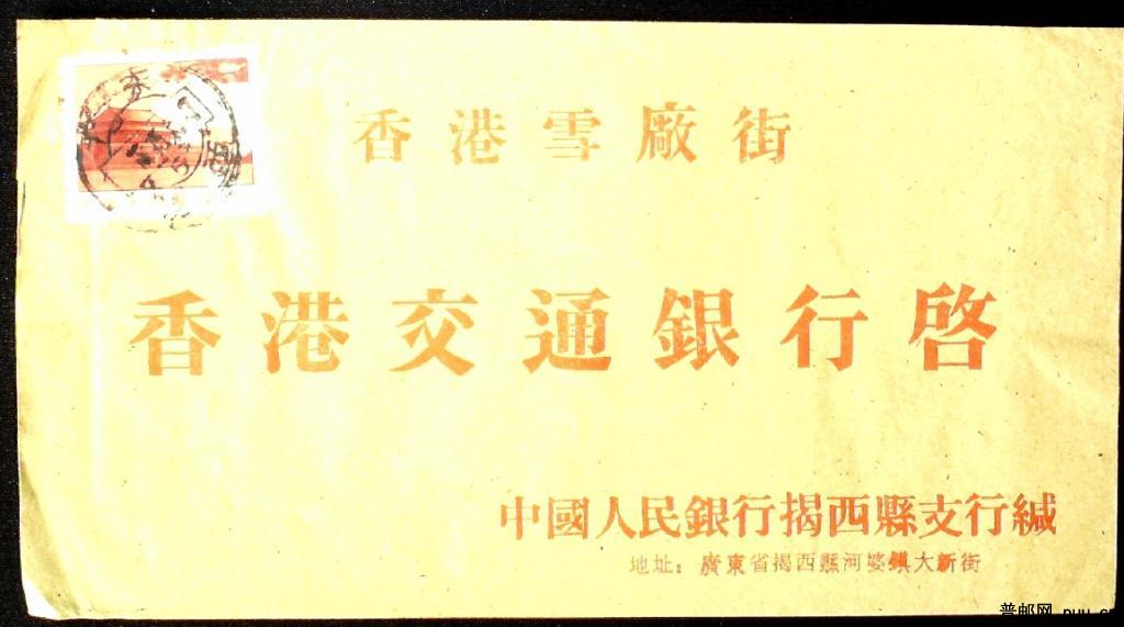 1975年贴文普8分红太阳广东揭西票寄香港实寄封一枚