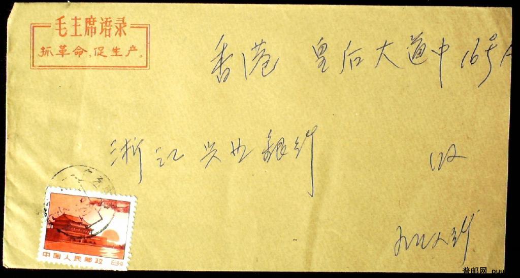 70年代毛主席语录封广东南海贴文普红太阳票寄香港实寄封一枚