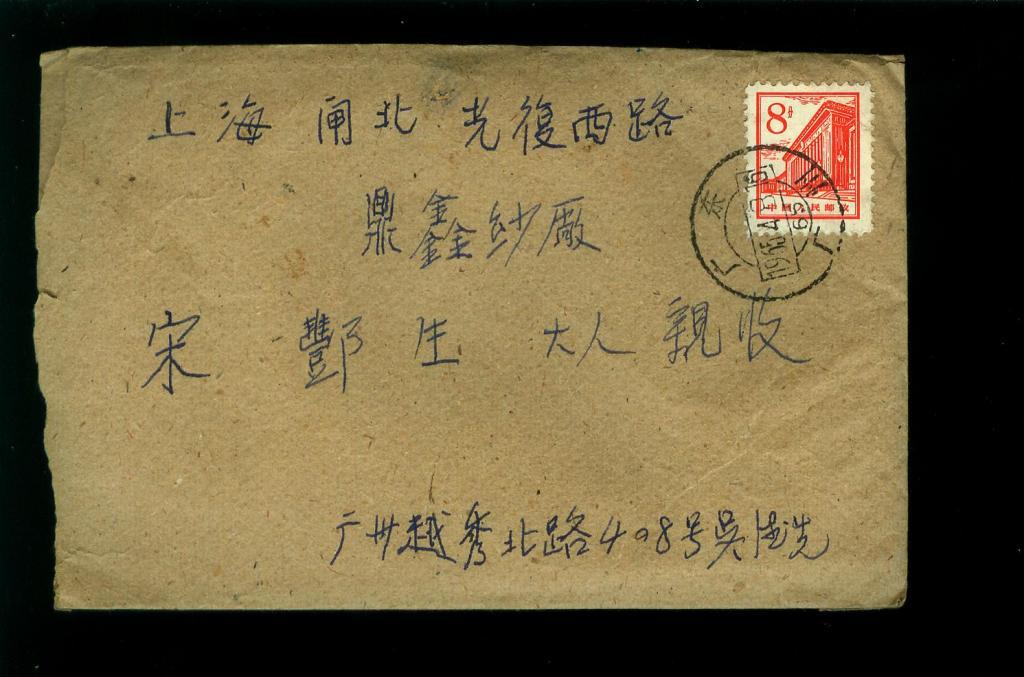 手糊信封贴普13-8分线式齿实寄封,戳清,内带信函