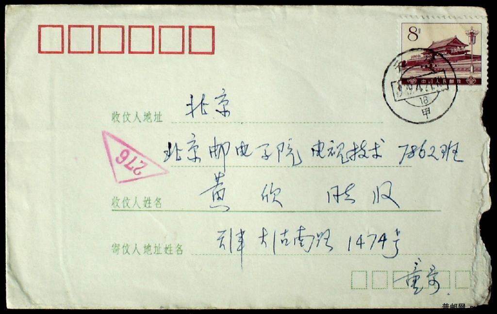 1979年贴普16 8分票天津甲单字戳寄北京实寄封一枚