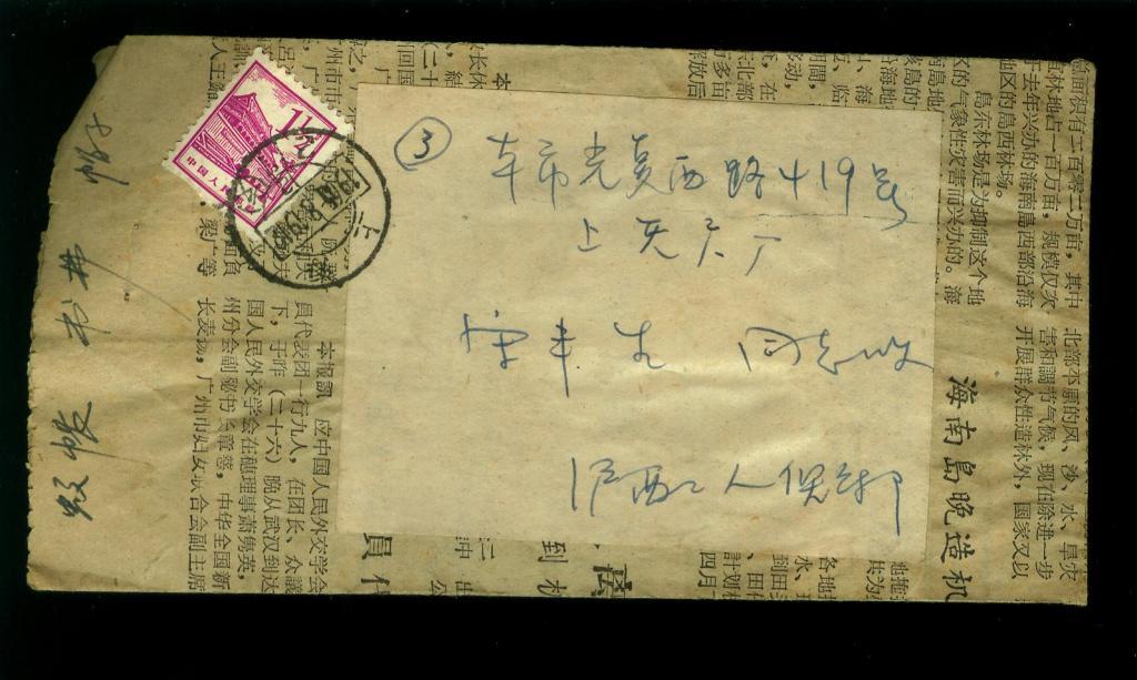手糊报纸封贴普13-1.5分实寄封(图上票叠进去,票完好)