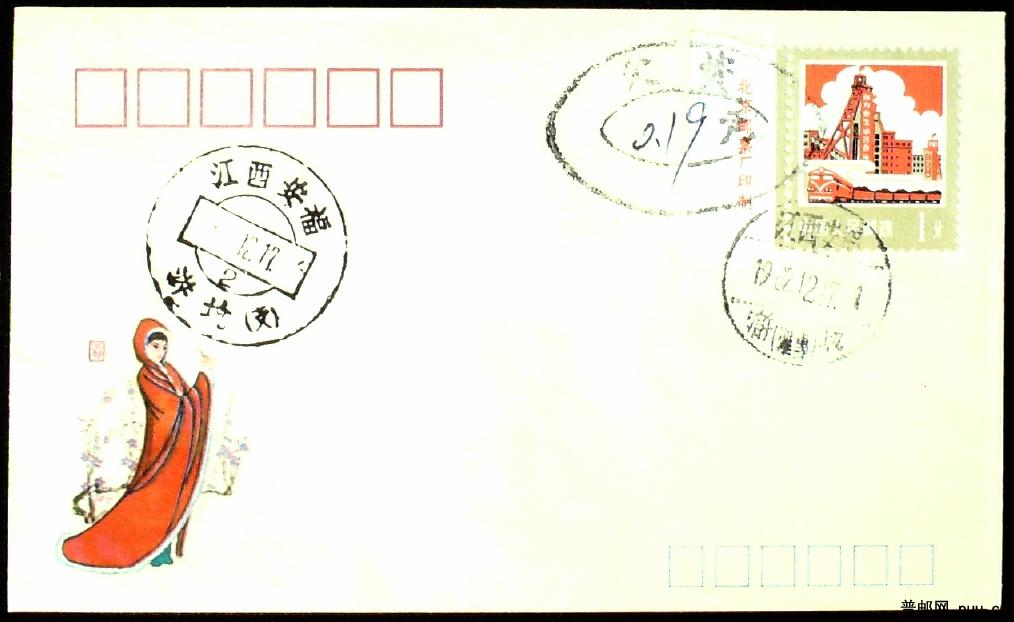 销江西安福浒坑三格戳及大直径同地名戳集邮封一件