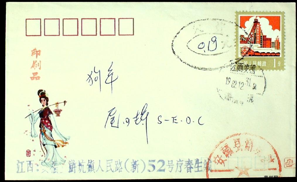 销江西安福浒坑三格戳及大直径同地名戳集邮一枚