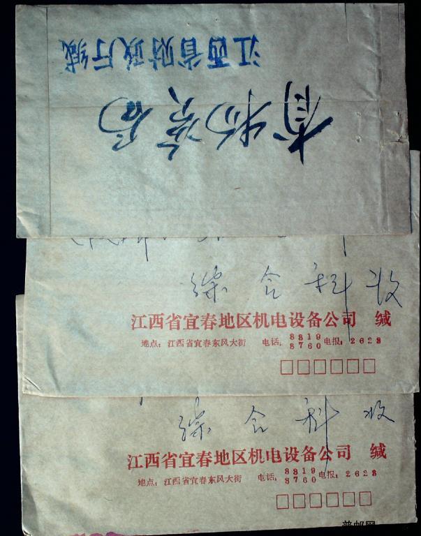 80年代江西宜春国内邮资已付回型八角戳实寄封三枚