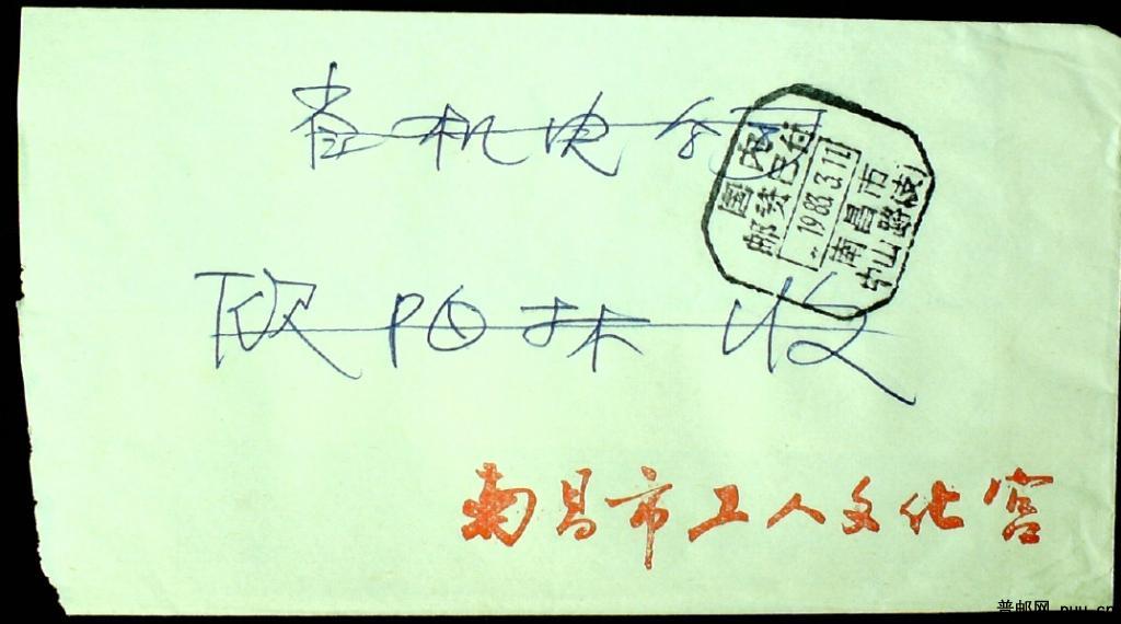 1983年南昌市中山路回型八角戳国内邮资已付戳实寄封一枚