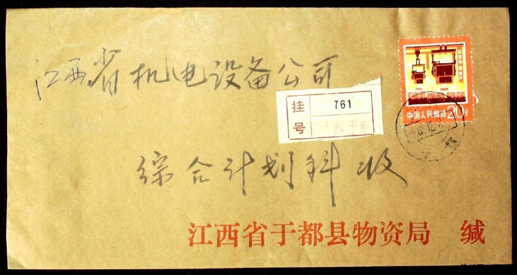 1982年江西于都贴普18 20分挂号寄南昌挂号实寄封一枚