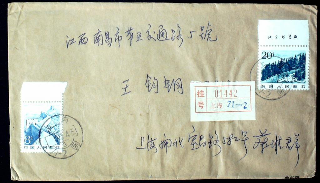 1983年贴普22 20分厂铭票上海寄南昌实寄封一枚