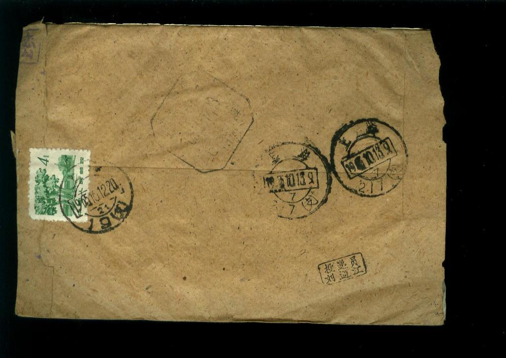 2次利用信封一贴普12另盖机要通信邮资已付,戳不清细可辨 (603)