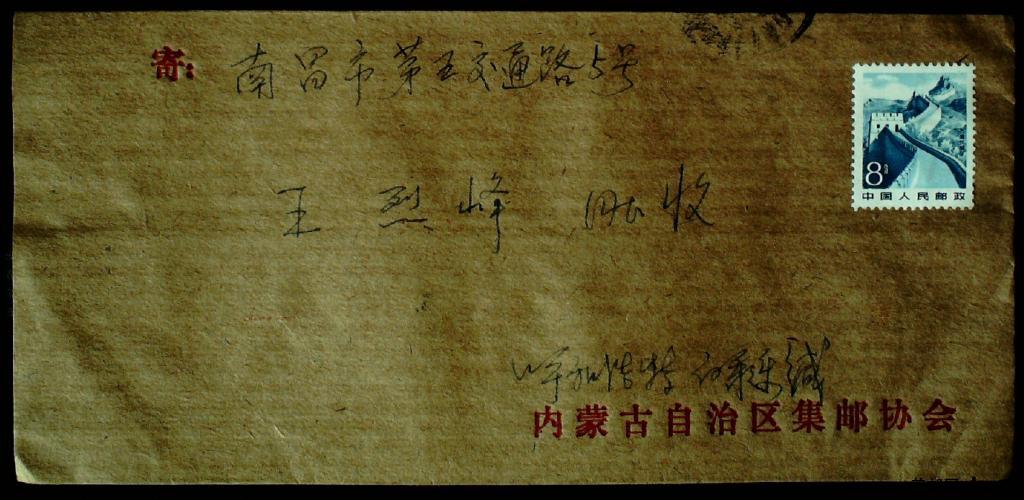 内蒙呼和浩特寄江西南昌贴普22 8分漏销票平信实寄封一枚