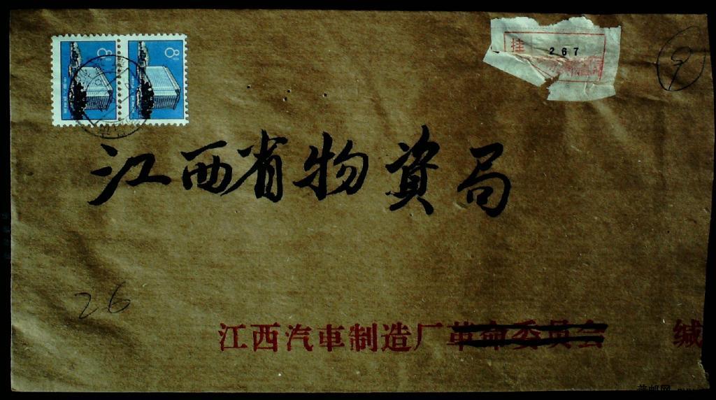 1985年江西南昌市新溪桥寄出本埠挂号实寄封一枚