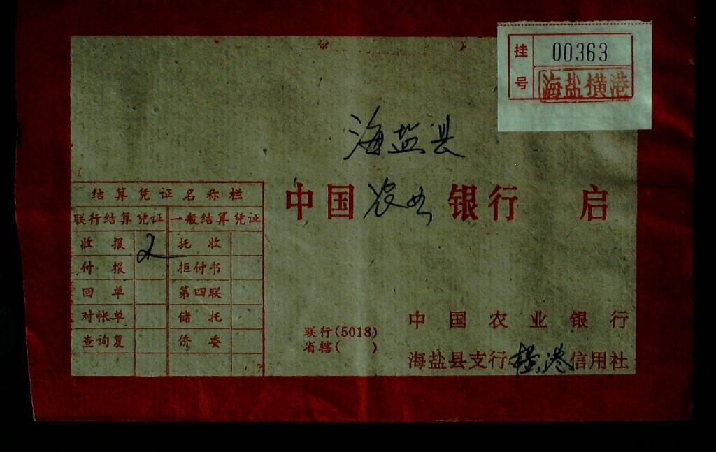 1983年贴普18 10分(窄距)双联江苏海盐横港联行挂号实寄封一枚