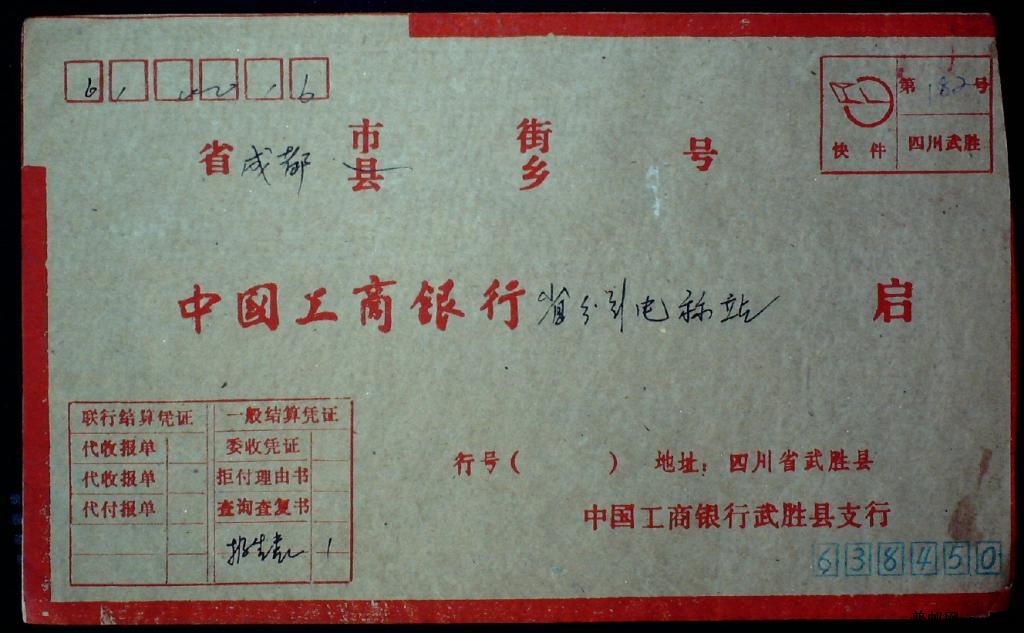 1990年7月四川武胜寄四川成都联行附加费快件实寄封一枚