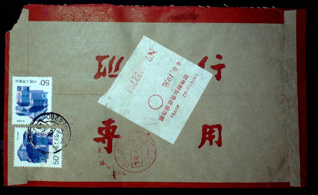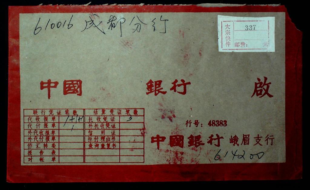 1990年四川峨眉寄成都联行附加费快件实寄封一枚