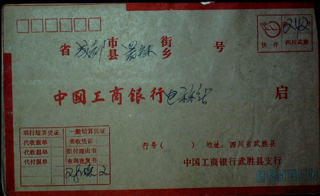 1990年四川武胜寄成都联行附加费快件实寄封一枚
