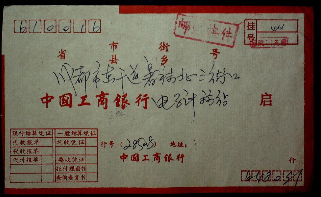 1990年四川涪陵寄成都联行快件附加费实寄封一枚
