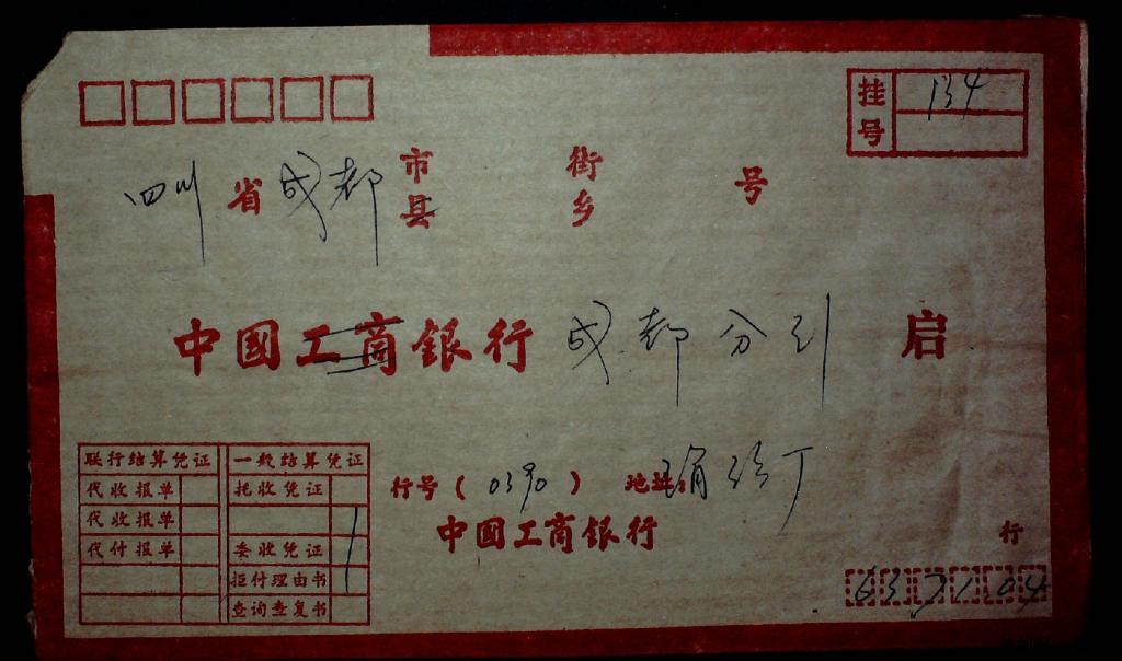 1990年四川南充县级成都附加费联行挂号实寄封一枚