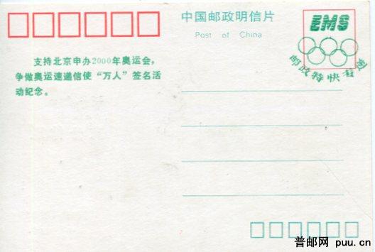 贺年有奖片 1992年猴兑奖片加盖EMS和申办奥运 新8全2套