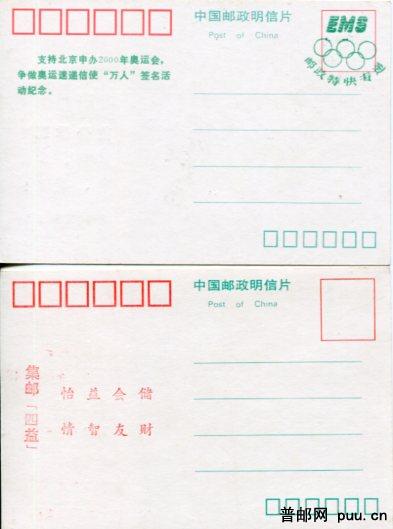 贺年有奖片 1992年猴兑奖片邯郸邮电局加盖 新8全2套