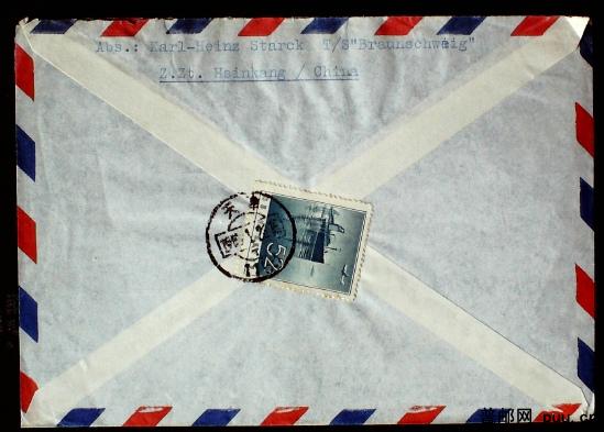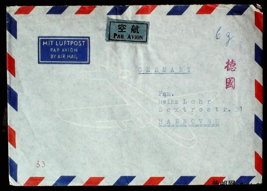 50年代贴航空52分天津寄德国航空实寄封一枚