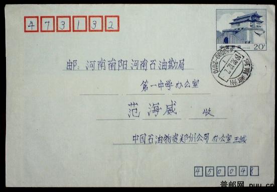 1992年箭楼普资封发行当年河南郑州寄南阳