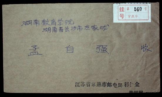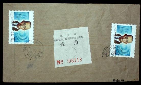 1988年江苏常熟贴J149竺可桢附加费挂号实寄封一枚