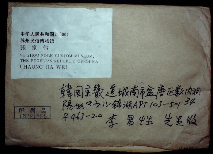 1994年贴编年票居民大佛等邮票江苏苏州国际平刷寄韩国实寄封一枚