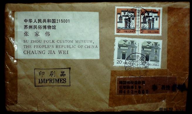 1969年贴居民普票江苏苏州寄韩国国际平刷实寄封一枚