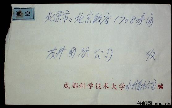 1984年贴普22 10分四川成都42所寄北京国内航空实寄封一枚