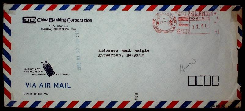 1989年菲律宾机戳实寄封一枚