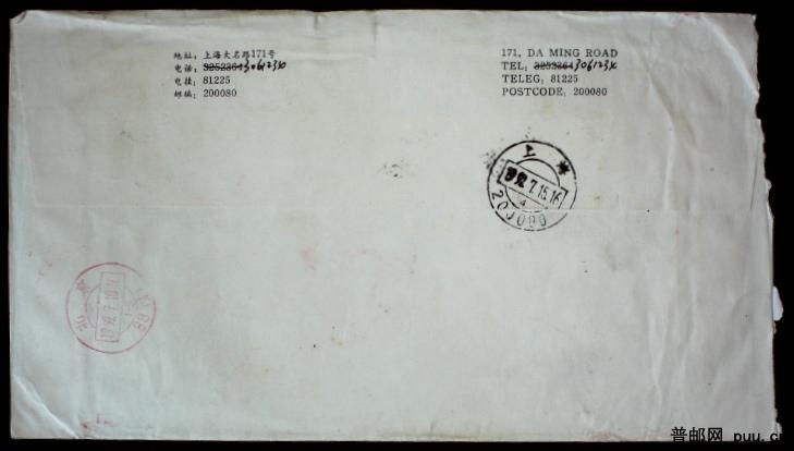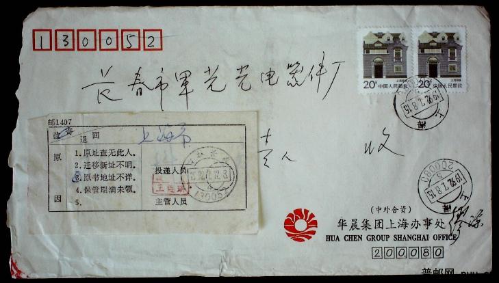 1992年上海寄北京加盖退件戳实寄封一枚