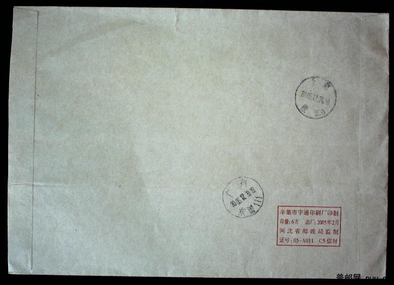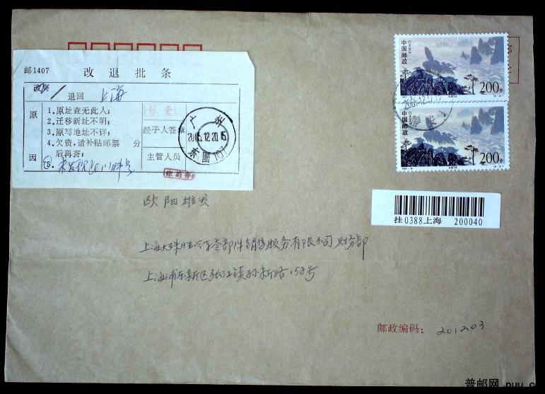 2005年上海寄广州改退实寄封一枚