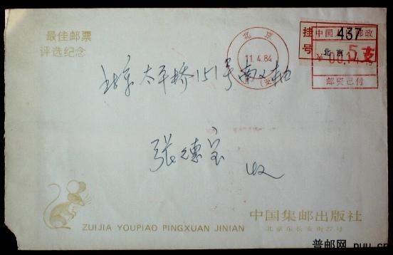1984年最佳邮票评选机戳封一件