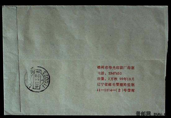 2001年贴20分民屋疑是假票实寄封一枚