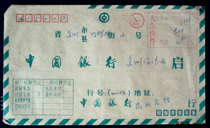 1990年江苏联行大字快件贴票附加费实寄封一枚