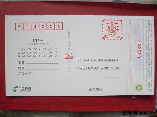 答题卡 邮资片
