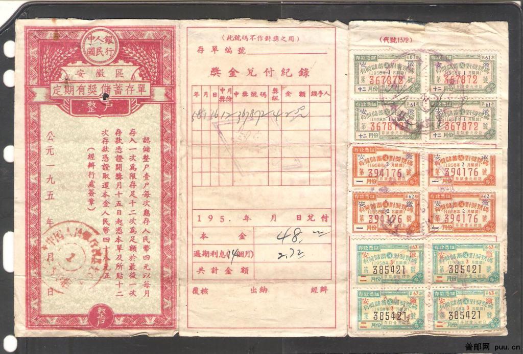 有奖储蓄整户一件(贴花贴满少见)