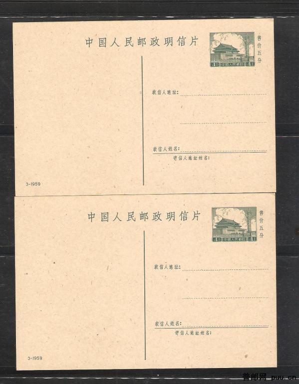 普9邮资片(59-3)两片
