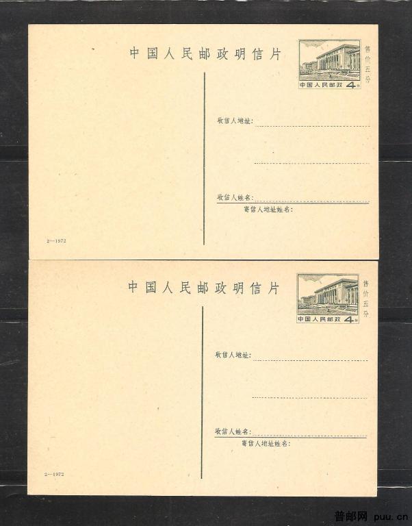 普14邮资片(72-2)两片