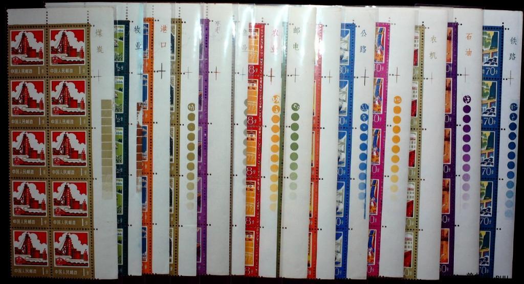 普18 工农业生产建设图全套票名及色标直角边10连各一个