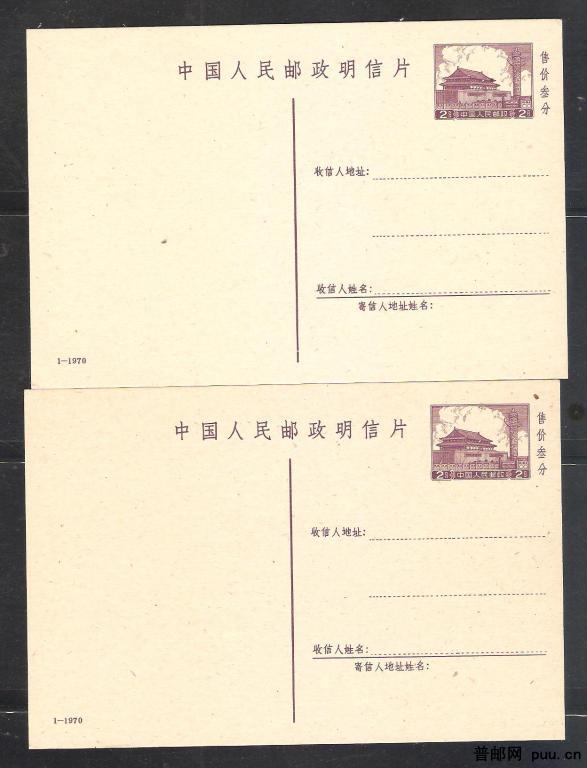 普9邮资片(70-1)新两片
